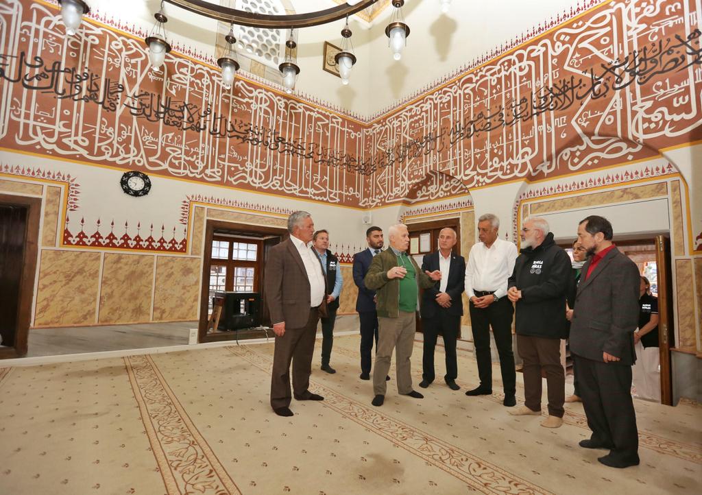 Bursa Büyükşehir Belediye Başkanı Mustafa Bozbey, beraberinde Büyükşehir Belediyesi Genel Sekreter Yardımcısı Mehmet Yıldız, Kent Tarihi ve Tanıtımı Dairesi Başkanı Güney Özkılınç ve belediye yöneticileriyle birlikte İznik Mahmud Çelebi Camii’ni ziyaret ederek yapılan çalışmalar hakkında bilgi aldı. Cami içerisinde ve hazire alanında yürütülen çalışmaları yerinde inceleyen Başkan Bozbey, çevre düzenlemesi, ışıklandırması ve mezar bakımları tamamlanan bölgenin İznik’e değer kattığını söyledi. Kentin tarihi mirasına sahip çıktıklarını belirten Başkan Bozbey, “İznik Mahmud Çelebi Camii Haziresi’nin bakım ve onarım çalışmalarını tamamlayarak kent tarihine önemli bir katkı sunduk. Osmanlı dönemi mezar taşlarının özgün süslemeleriyle dikkat çeken bu hazire, Çandarlı ailesi başta olmak üzere İznik’in önde gelen isimlerinin kabirlerine ev sahipliği yapıyor. Yapılan düzenlemelerle, bu kıymetli mirası gelecek nesillere aktarmayı amaçlıyoruz. İznik’in mirasına sahip çıkıyoruz” dedi.