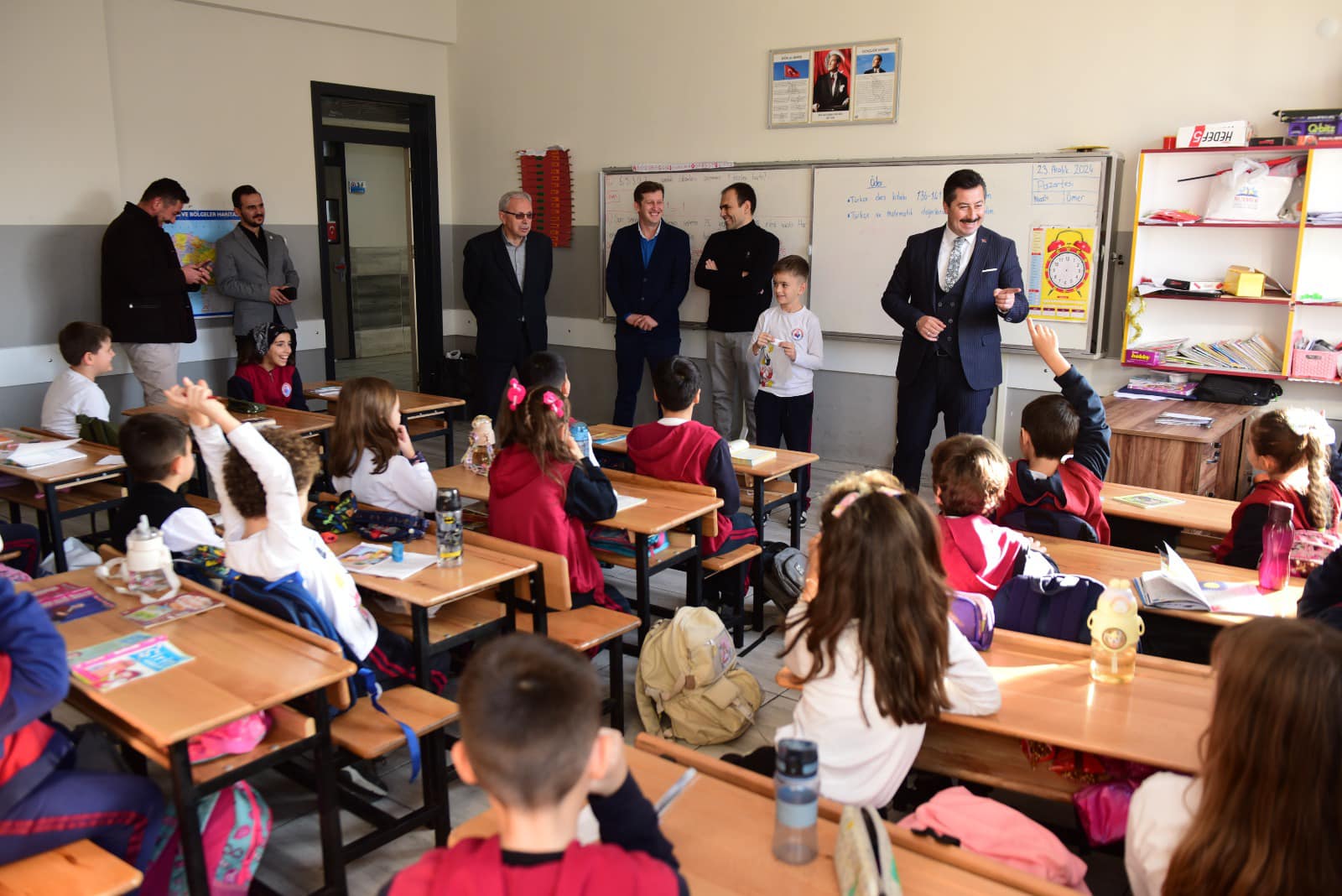 Yenişehir Belediye Başkanı Ercan Özel, Akçeşme İlköğretim Okulu’nda Sınıf Başkan Adayı olan Kayra Tokgöz’ün davetiyle 3/D sınıfına ziyarette bulundu.
