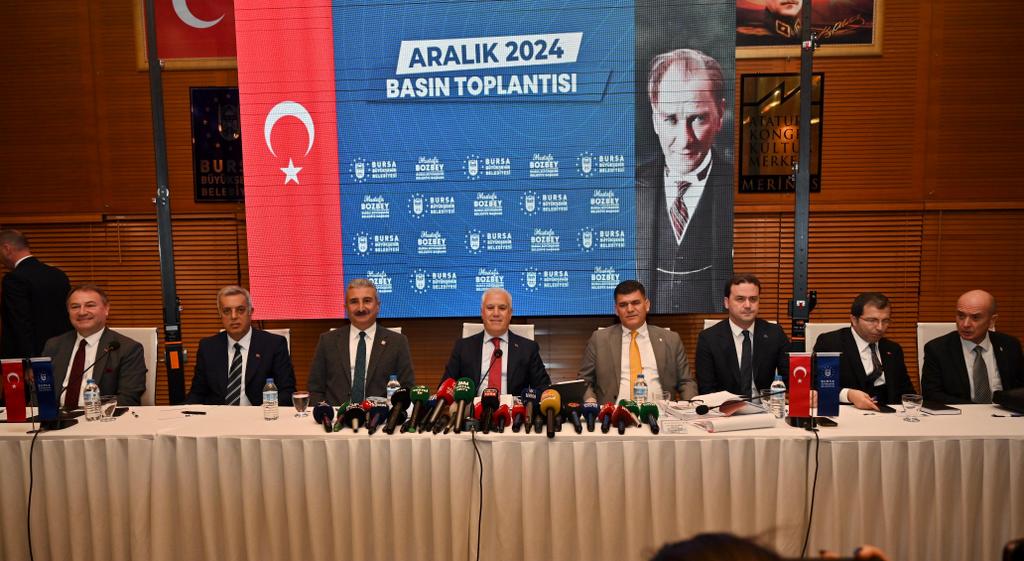 Bursa Büyükşehir Belediye Başkanı Mustafa Bozbey, göreve başladığı günden bu yana geçen 9 aylık dönemde belediye ve iştirakler tarafından gerçekleştirilen faaliyetleri ve hayata geçirilen hizmetleri ‘Yıl Sonu Değerlendirme Toplantısı’nda kamuoyuyla paylaştı. Merinos Atatürk Kongre ve Kültür Merkezi’ndeki toplantıda, Başkan Mustafa Bozbey’in yanı sıra CHP İl Başkanı Nihat Yeşiltaş, Büyükşehir Belediyesi Genel Sekreteri Doç. Dr. Ergül Halisçelik, Genel Sekreter Yardımcıları, daire başkanları ve çok sayıda basın mensubu katıldı. Başkan Mustafa Bozbey, ‘Eğitime destek, Toplumsal eşitlik ve sosyal destek, Besaş, Burfaş, kadınlara yönelik çalışmalar, çiftçi destekleri ve tarıma yatırım, Tarım Peyzaj AŞ, ulaşım ve altyapı, yakın zamanda başlayacak ulaşım projeleri, turizm ve kent tarihi, 1/100.000’lik Çevre Düzeni Planı, kentsel dönüşüm, Burkent, Buski yatırımları, Burulaş, fen işleri projeleri, 2025 yılında tamamlanması planlanan projeler, park bahçeler, kültür sanat, çevre koruma, itfaiye, sağlık hizmetleri, gençlik ve spor, dış ilişkiler, Kültür AŞ, belediyenin mülkiyetinden çıkan taşınmazlar ile BBB, Buski ve şirketlerin borç durumu hakkında gazetecilere bilgi verdi.