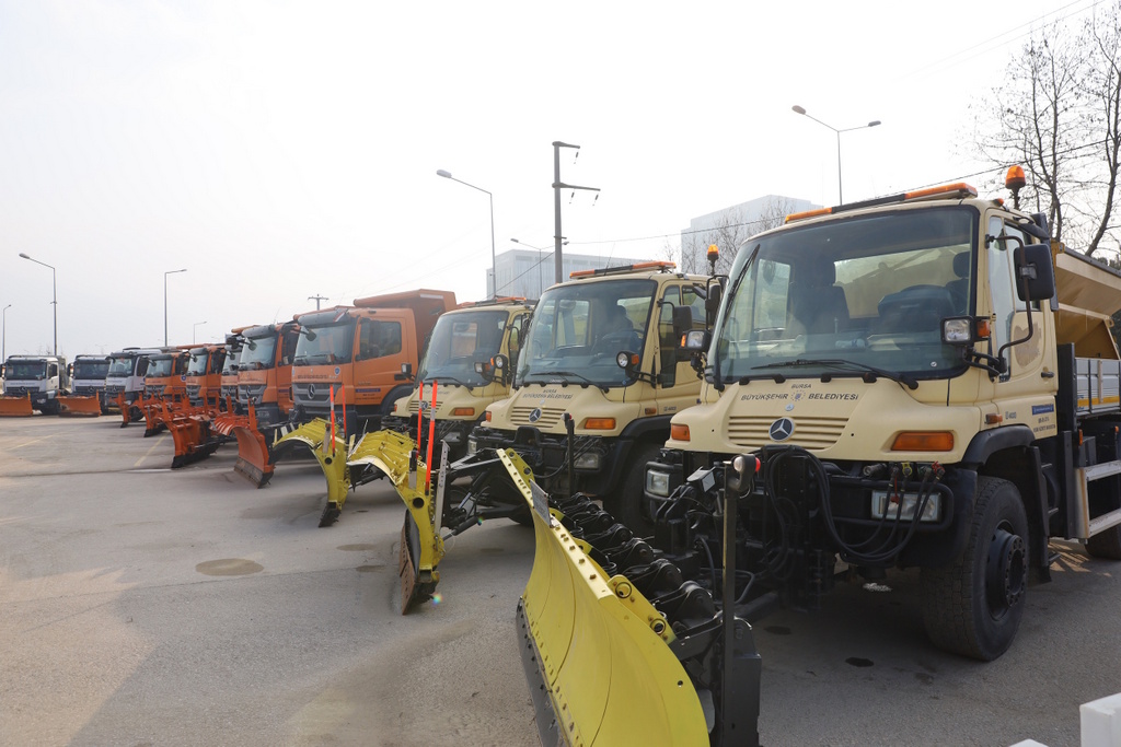 Büyükşehir Belediyesi Ulaşım Dairesi Başkanlığı ekipleri, etkili olması beklenen kar yağışı ve soğuk hava dalgasına karşı kent merkezinde ve 17 ilçede gerekli tüm tedbirlerini aldı. Karla mücadelede iki vardiyada toplam 101 ekip ve toplam 535 personel görev yapacak. Şehir genelinde 33 adet tuz serici ve kar bıçaklı kamyon, 27 adet kürekli tuzlama kamyonu, 23 greyder, 1 ekskavatör, 2 dozer, 1 vinç, 32 pick up, 11 loder, 38 JCB olmak üzere toplam 169 kamyon ve iş makinesiyle karla mücadele çalışmaları yürütülecek. Ekip ve ekipman anlamında tüm tedbirleri alan Büyükşehir Belediyesi, 22 bin 500 ton tuz ve 30 ton solüsyon rezerviyle Bursalıların ulaşımda aksama yaşamaması için 94 ana güzergahı kontrol altında tutacak.
