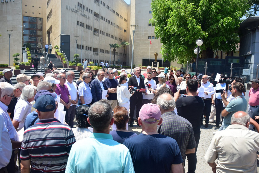 Uluyol Adliyesi önünde basın açıklaması yapan CHP Bursa İl Başkanı Nihat Yeşiltaş şunları söyledi: