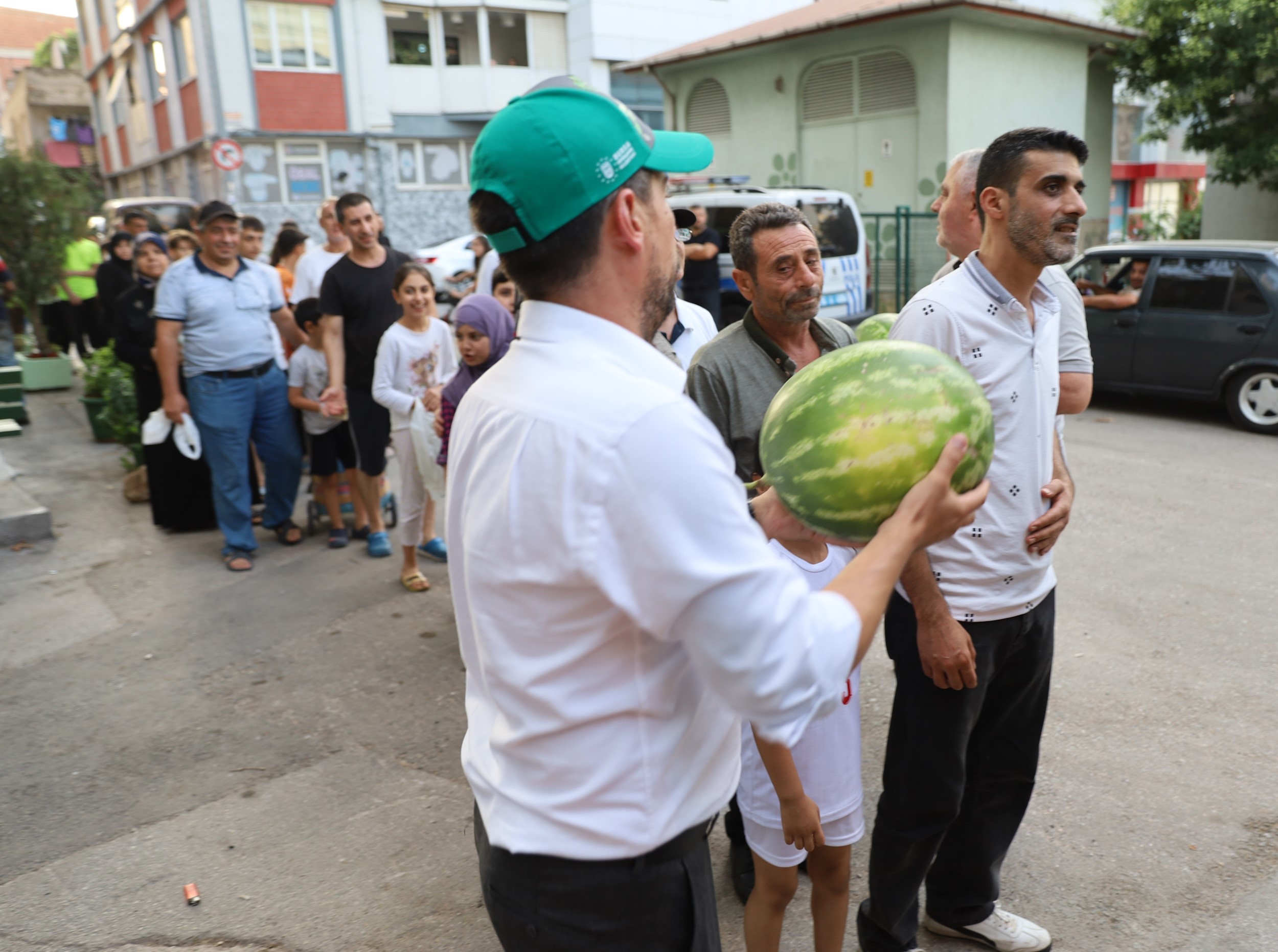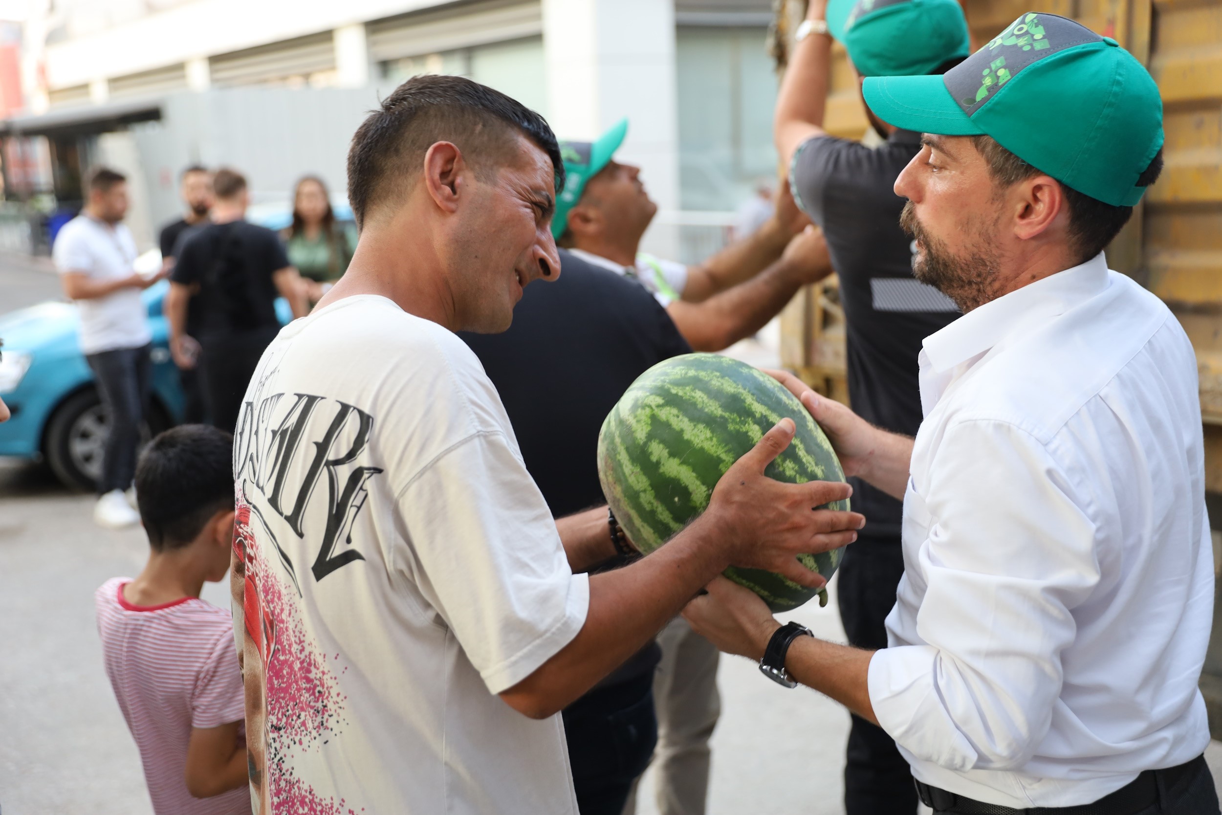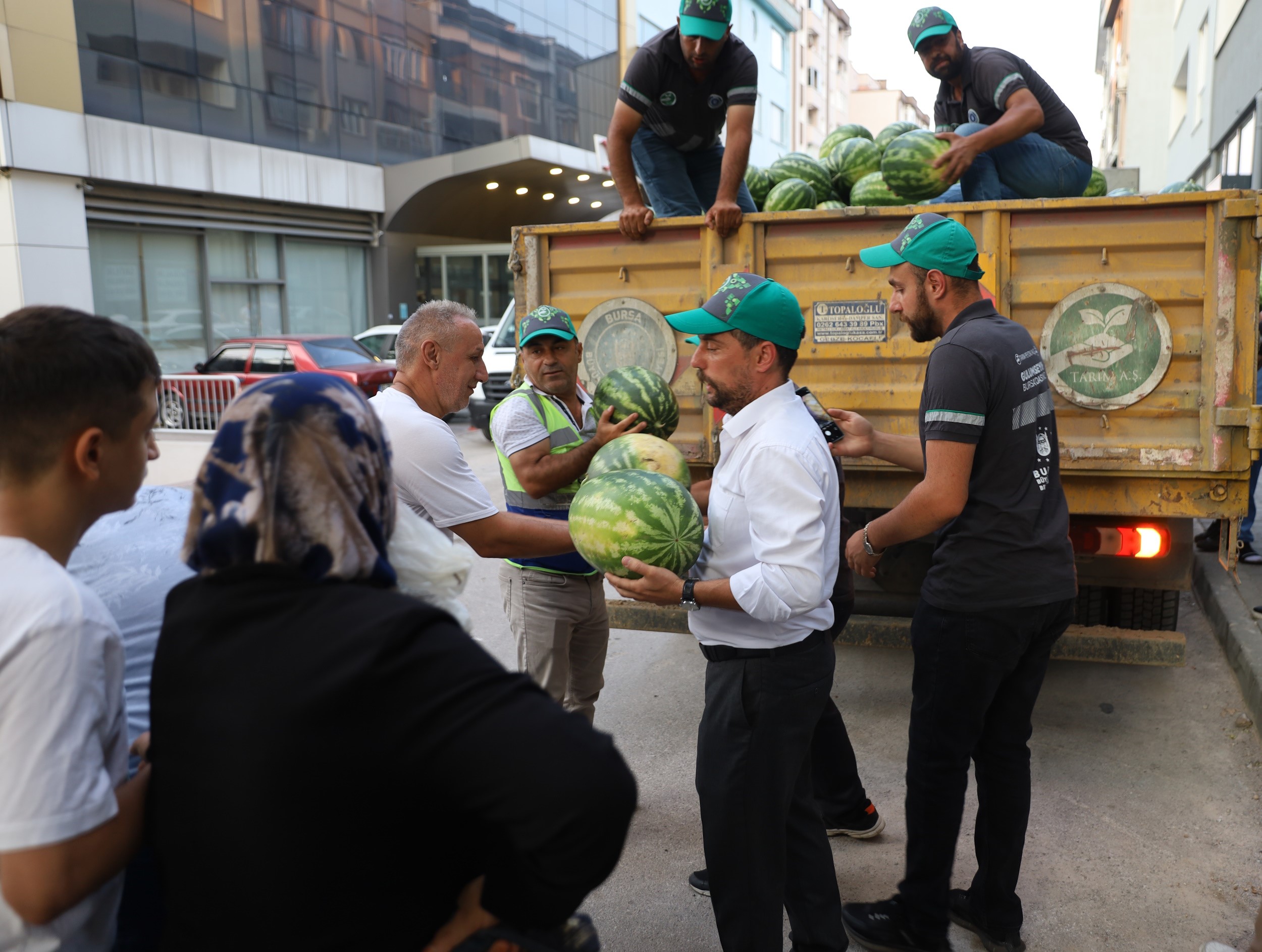 Bursa Büyükşehir Belediye Başkanı Mustafa Bozbey’in talimatıyla Mustafakemalpaşalı ve Karacabeyli çiftçilerden değerinde alınan kavun ve karpuzlar, kentin farklı noktalarında vatandaşlara ücretsiz olarak dağıtılmaya başlandı.