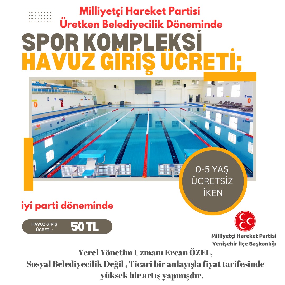 MHP’den yapılan açıklamada, ‘Sırtında yumurta küfesi yokken İlçemiz gündemini işgal eden her konuyla ilgili verdiği önerge ve dilekçeleri sosyal medya hesaplarında paylaşan Mevcut Belediye Başkanının göreve gelir gelmez yaptığı ilk icraatlardan birisi, Yenişehir Belediyemiz tarafından Yenişehir halkının hizmetine sunulan sosyal imkanlara % 600’e varan oranlarda zam yapmak oldu.