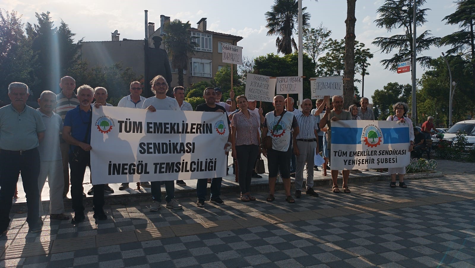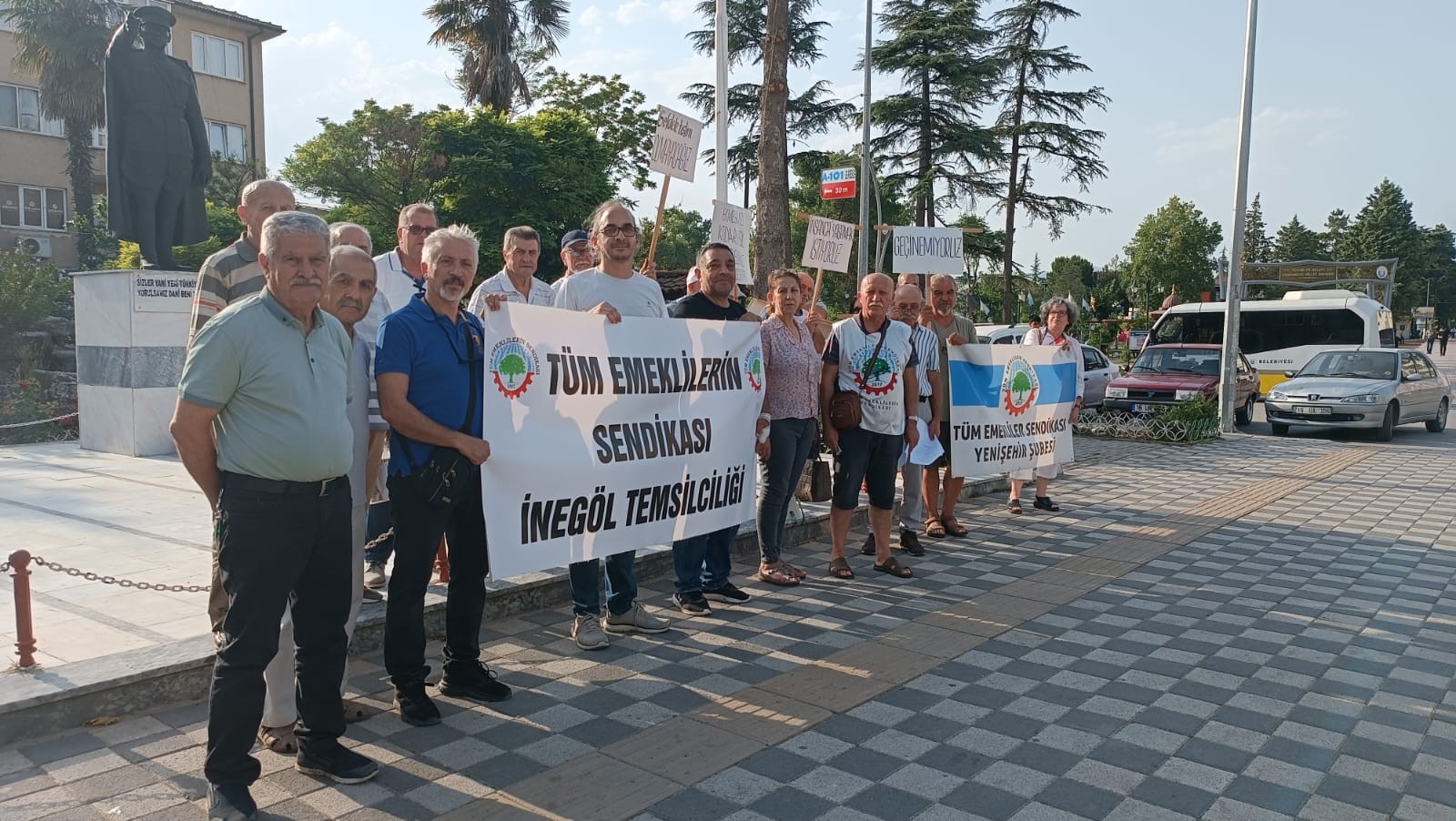 Tüm Emekliler Sendikası Yenişehir Şubesi Atatürk anıtı önünde basın açıklaması gerçekleştirdi.