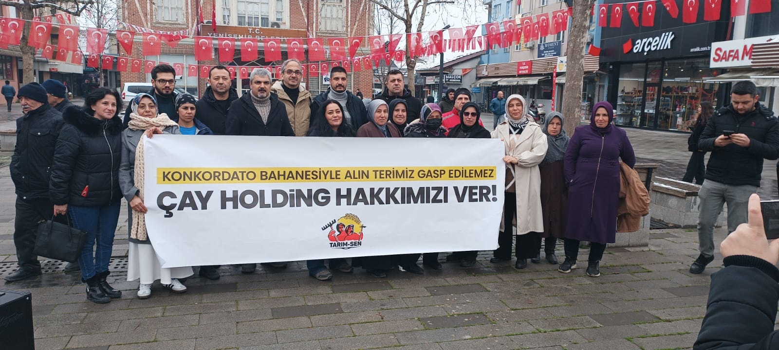 Zem Narenciye işçileri tarafından yapılan basın açıklamasında, şu ifadelere yer verildi: “Bursa’nın Yenişehir ilçesinde bulunan ve Çay Holding bünyesinde faaliyet gösteren Zem Narenciye sera işletmesinde yıllardır çalışan işçiler olarak bugün burada gasp edilen haklarımızla ilgili toplandık. Yıllardır çalıştığımız süre boyunca psikolojik şiddet ve hakaretlere maruz kaldık. Maaşlarımızın geç ödenmesi, mesai paralarımızın verilmemesi, su ve yemeklerimizin düzenli bir şekilde verilmemesi, Ayaz köyünde bulunan dere suyunu içme suyu diye içirilip zehirlenmemiz gibi işçi sağlığını hiçe sayan pek çok uygulamaya maruz kaldık. Seranın satılacağını öğrenmemiz üzerine dişimizi sıktık, sıktık ve bekledik. Sonunda, Temmuz 2025’in başında bir arkadaşımıza yapılan haksızlığa itiraz ettik, patron vekili Kıyasettin Çay’ın hakaretlerine maruz kaldık. Jandarma’yı çağırdık ve şikayetçi olduk. Akabinde, kod 48 ile, tazminatsız bir şekilde, maaşlarımız da ödenmeden işten çıkarıldık. Çay Holding patronları bizi devamsızlık yapmakla suçlamış olsa da, aslında işi kendimiz bırakıp gitmemiz için elinden geleni yapıyorlardı. Maaşlarımızın eksik, düzensiz ve zamanında yatırılmaması, her sabah içtima yapan patronun hakaret ve baskıları, yapamayacağımız işlere bizi koşmaları, tek bir işçinin gösteremeyeceği performansı göstermemizi beklerken, bunun mümkün olmadığını söylediğimizde yediğimiz hakaretle… Zem Narenciye adlı şirkette ağır koşullarda köle gibi çalıştırılıyor, hakaretlere maruz kalıyor, alacaklarımızı alabilmek için çalışmaya devam ediyorduk. Yani biz işi bırakmadık ve bırakamazdık. Onlarsa işi bırakıp alacaklarımızdan feragat etmemiz için her şeyi yapıyorlardı. Daha önce konuyu aktardığımız Yenişehir Belediye Başkanı Ercan Özel başta olmak üzere, alacaklarımızın derhal ödenmesi yönünde harekete geçilmesini, mağduriyetimizin hızlıca giderilmesini bekliyoruz. Alın terimizin karşılığını ve adalet istiyoruz!”