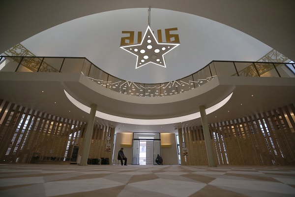 Çelik yapıya sahip olan, üstten bakıldığında nokta gibi görünen, iç bölümünde tavanında ay ve yıldız şeklinde aydınlatma bulunan, 24 metre çapı günün 24 saatini simgeleyen camide aynı anda 1110 kişi ibadet edebiliyor. Sıra dışı mimarisiyle dikkati çeken caminin mimarlığını üstlenen Yüksek Mimar Ali Tarık Paksoy, AA muhabirine, ibadethanenin şeklinden ziyade manalarıyla farklı olduğunu söyledi.