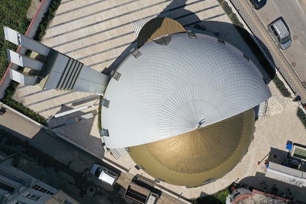 “Camimizin planı tam bir daire formunda, noktasal bir yapıya sahip. Bu camiye yukarıdan baktığımızda insanoğlunun kainatta bir nokta, bir zerre kadar küçük olduğunu anlaması gerektiğini belirten bir formda. İki yarım kubbeden biri geçici dünya hayatını anlatırken altın rengindeki diğer kubbemiz de ahiret hayatını temsil ediyor. Yani Allah’ın rızasını kazanacak bir hayat geçirdiğimizde altın değerindeki ahiret yurduna geçeceğimizi bize temsil eden bir mimari forma sahip.”