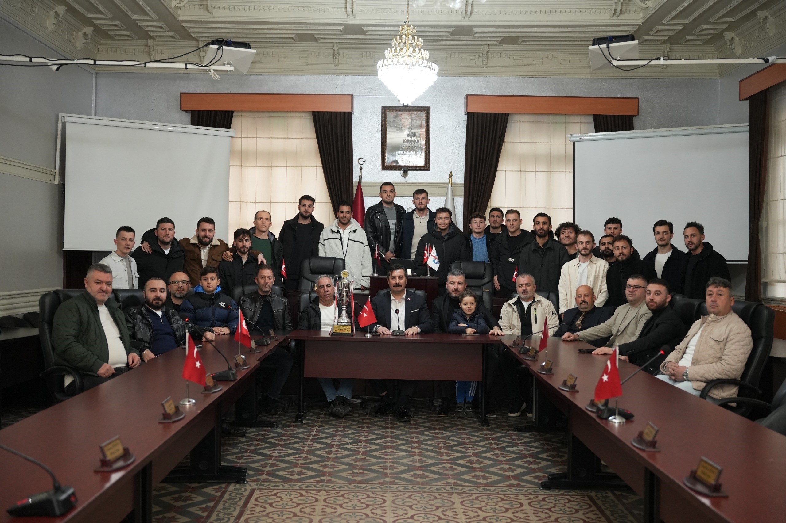 İftar öncesi Futbol takımı şampiyonluk kupasını Belediye Başkanı Ercan Özel’e götürdü.