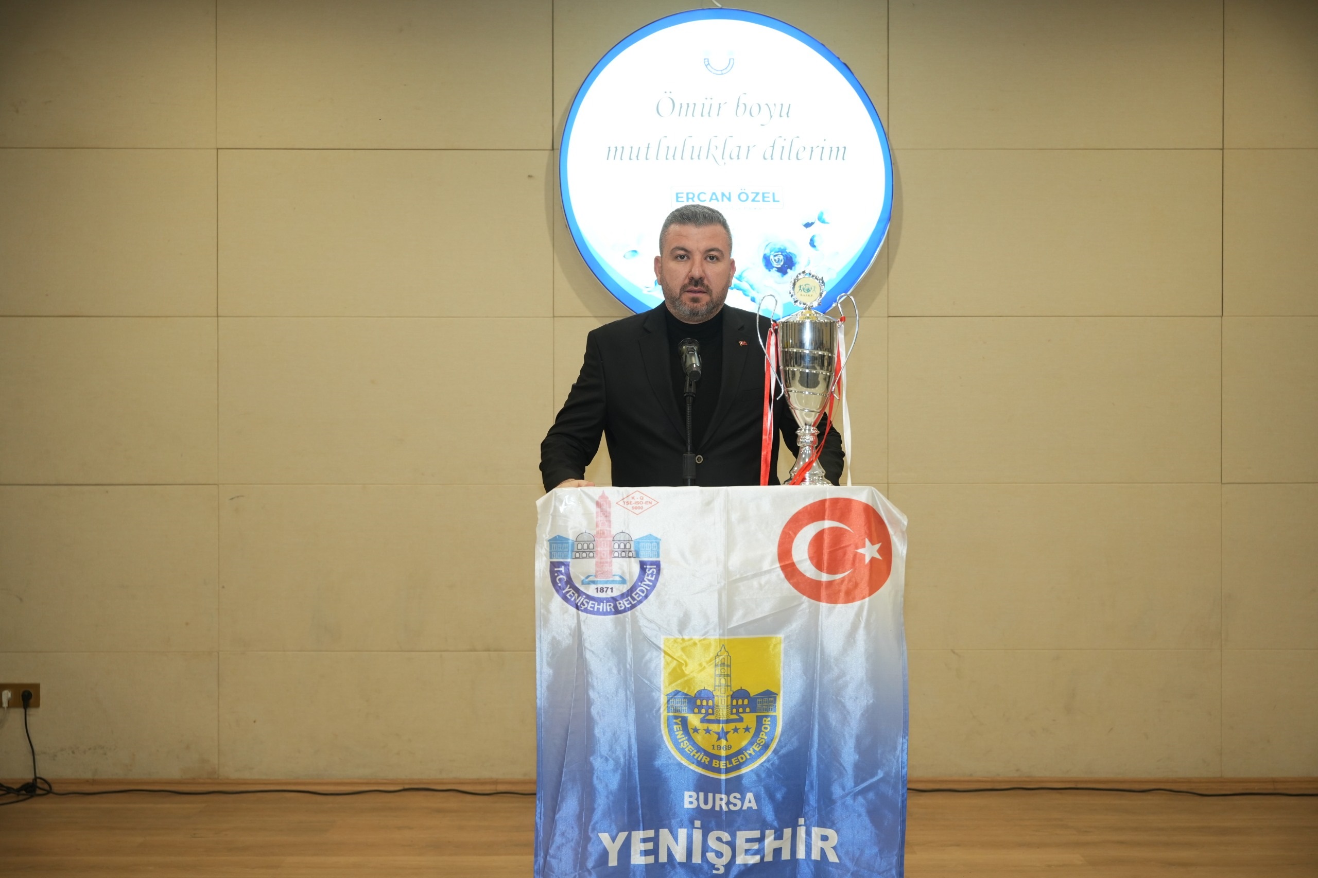 Yenişehir Belediye Başkanı Ercan Özel’de konuşmasında, Yenişehir’in sporcu bir ilçe olduğuna dikkat çekerek, ‘Yenişehir Belediyespor sadece futbol ve voleybolda değil katıldığı tüm branşlarda başarıdan başarıya koşmaktadır. Hedefimiz sporu seven bir ilçe meydana getirmektir ve bu yolda emin adımlarla devam ediyoruz. Spora bu zamana kadar yaptığımız destek artarak devam edecektir. Çünkü biz biliyoruz ki spor yapan bir gençlik kötü alışkanlıklara dadanmaz. Bu nedenle sporu önemsiyoruz. Voleybol takımımız 1. Ligin kapısından döndü ama son derece başarılı bir sezon geçirdiler. Her birine teşekkür ediyorum. Futbol takımımız da grubunda şampiyon olarak bizlere kupayı getirdiler. İnşallah asıl şampiyonluğu play-off maçlarında bekliyoruz. Bundan hiç şüphemiz de yok. Elbette taraftar grubumuzu da unutmadık. Her zaman takımlarımıza destek oldular. Maçlarda onlar takımımızı ve bizi alkışlıyorlar şimdi de ben sizden taraftarımıza kuvvetli bir alkış bekliyorum’ dedi.